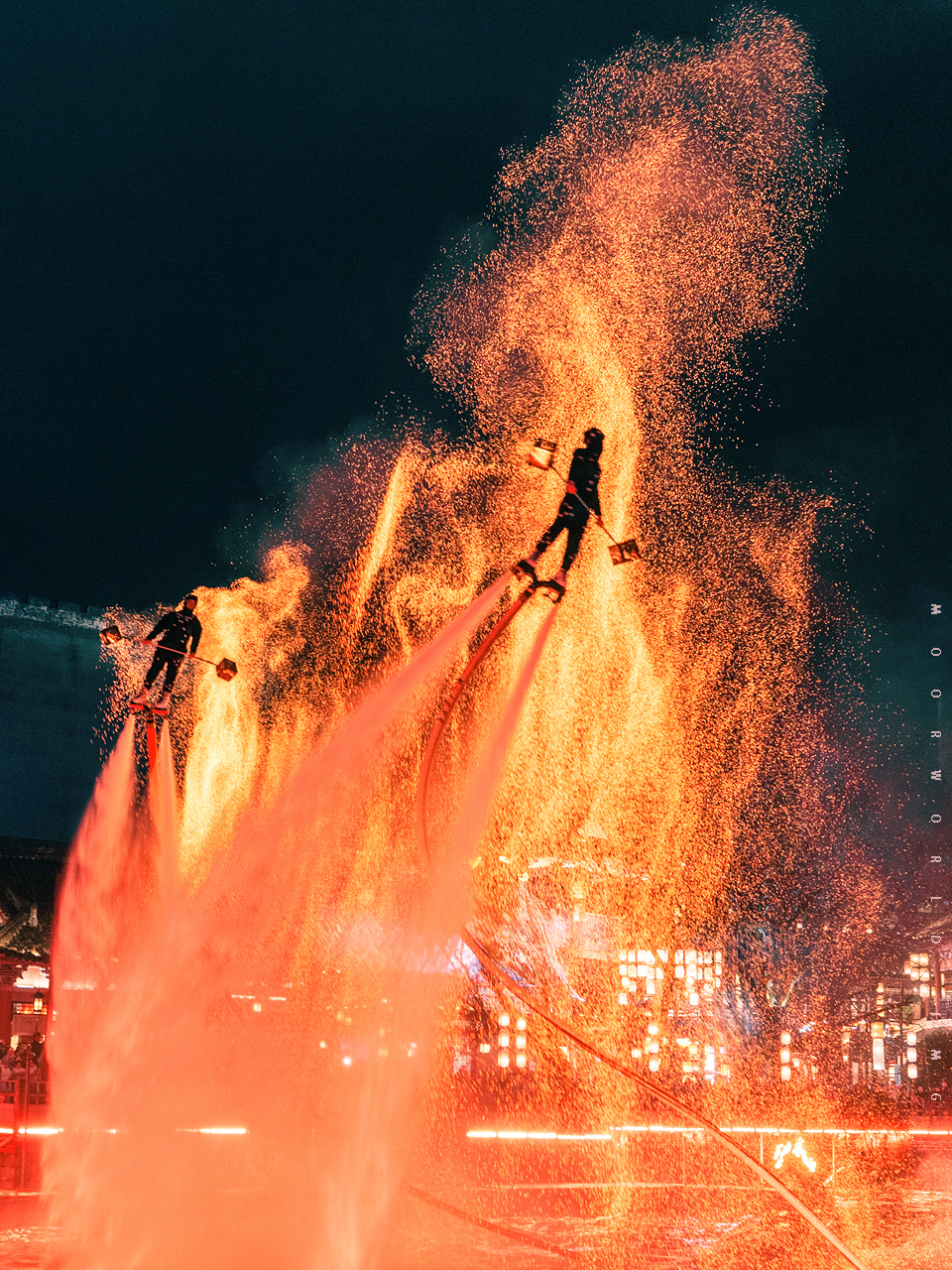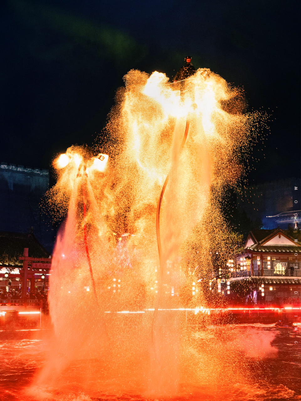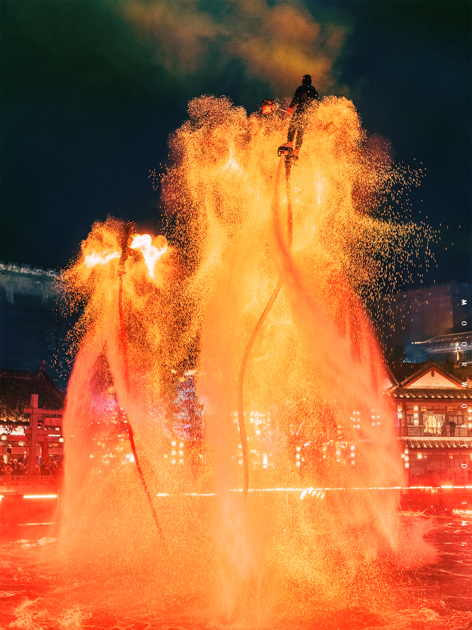 当火壶与水上飞人相结合,当打火花与古樊楼相搭配,仿佛是一种梦境在这里照入了现实。