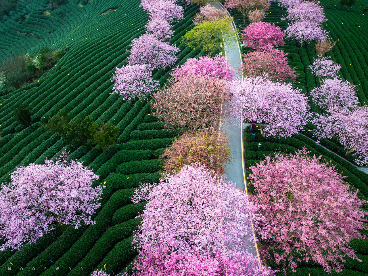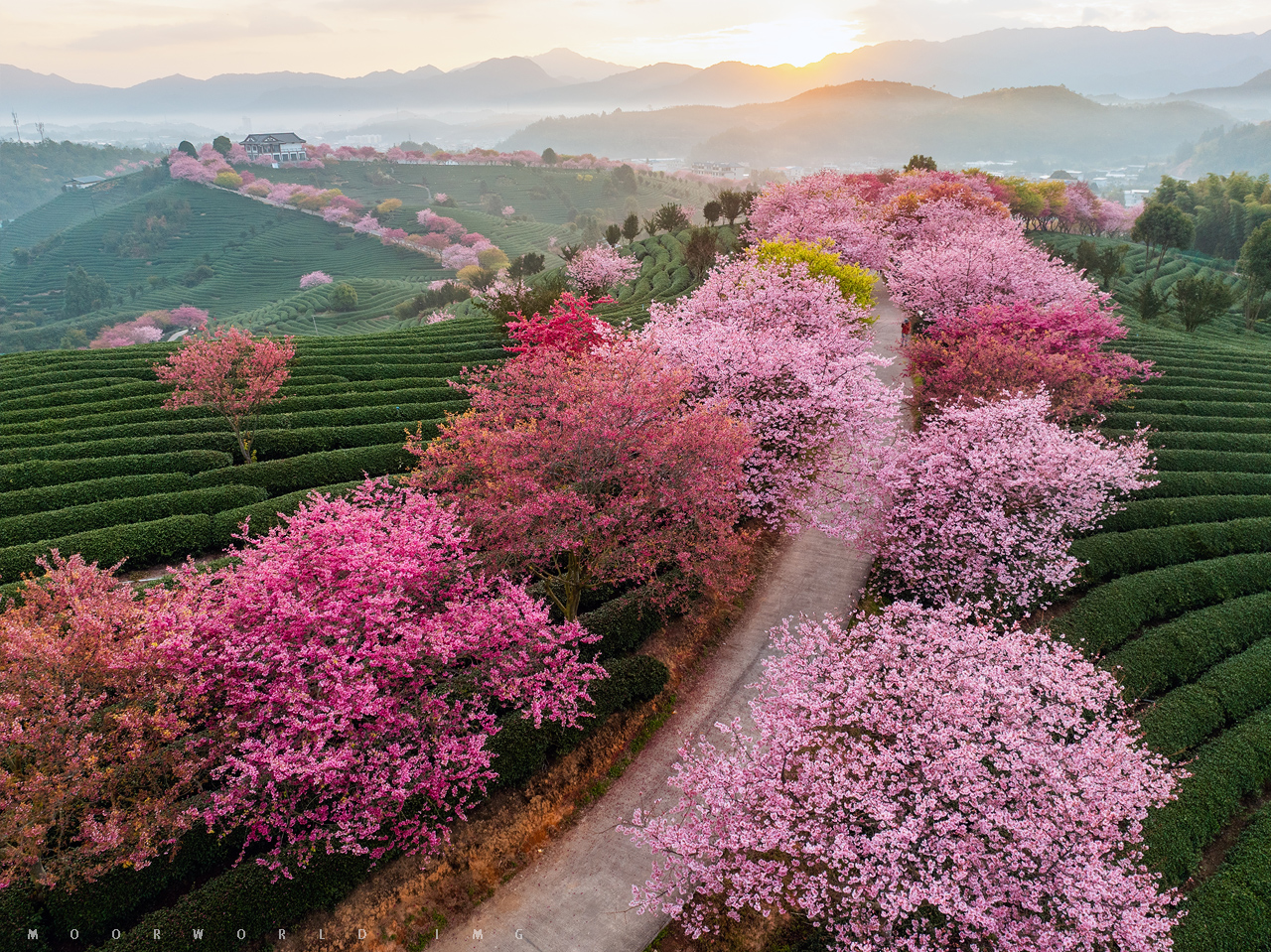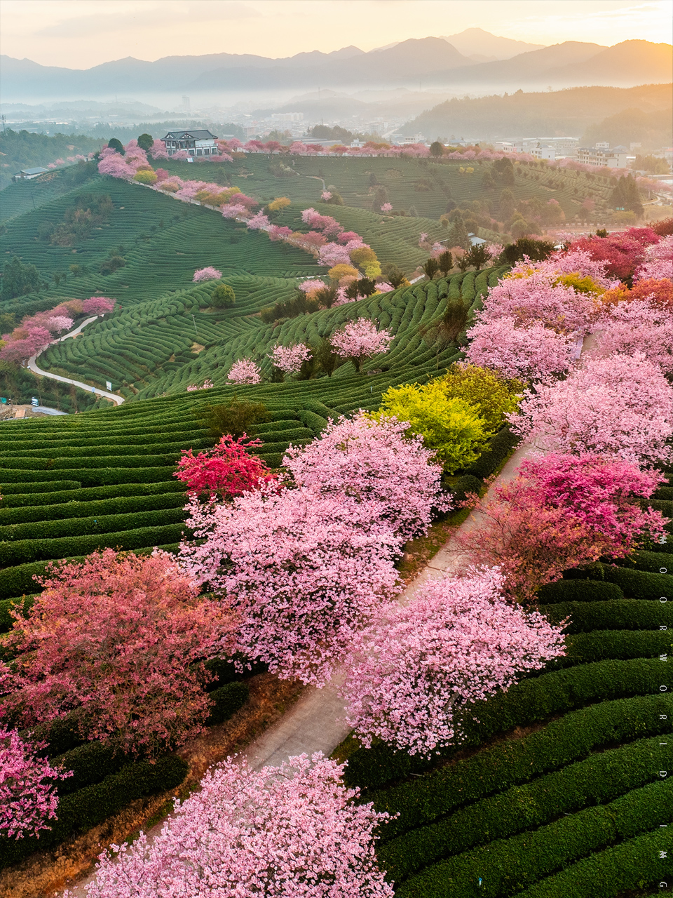 以福建漳平樱花茶园为典型代表的闽西闽南樱花恰好也在这段时光里散落开放,