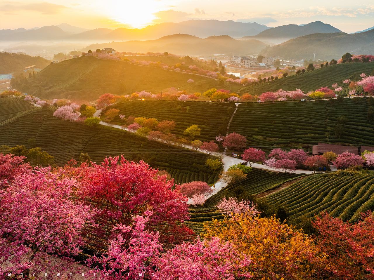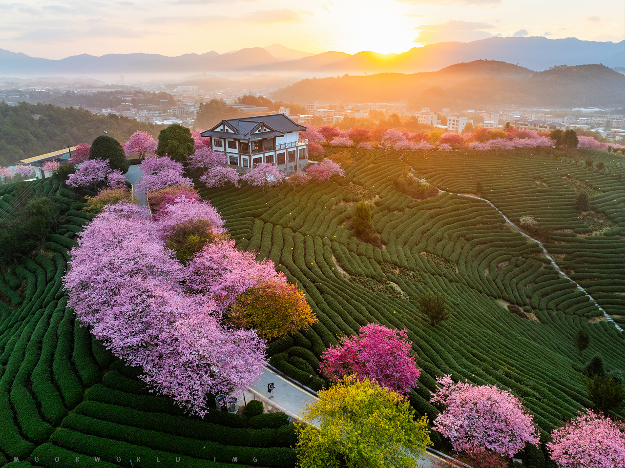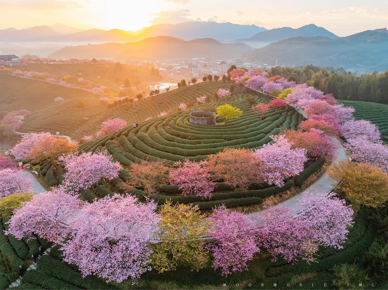 以福建漳平樱花茶园为典型代表的闽西闽南樱花恰好也在这段时光里散落开放,