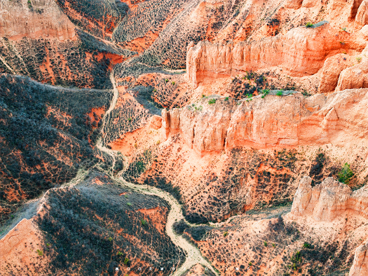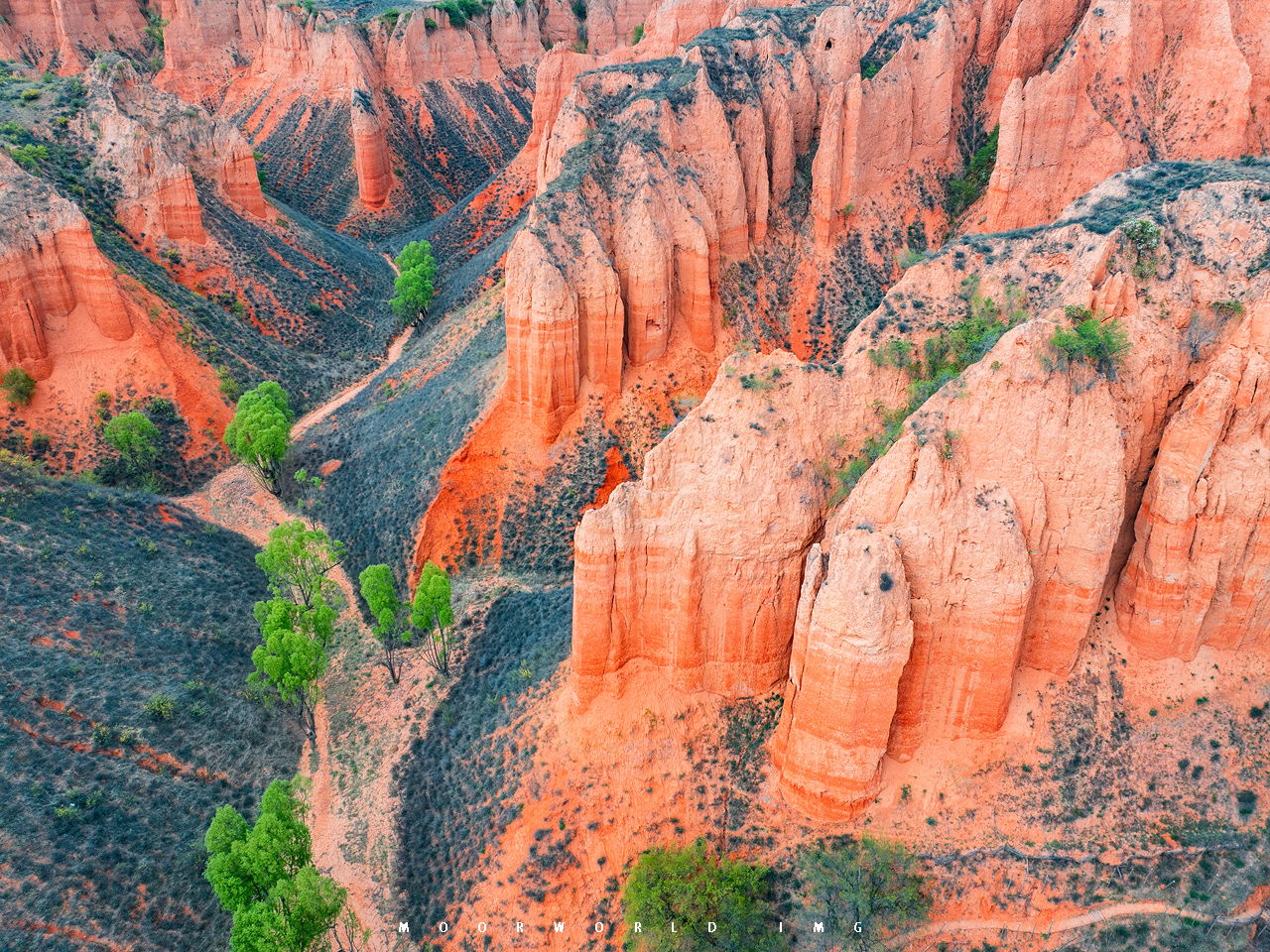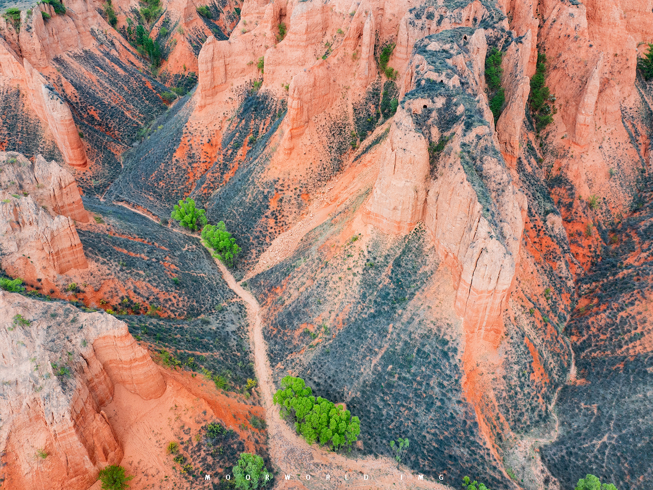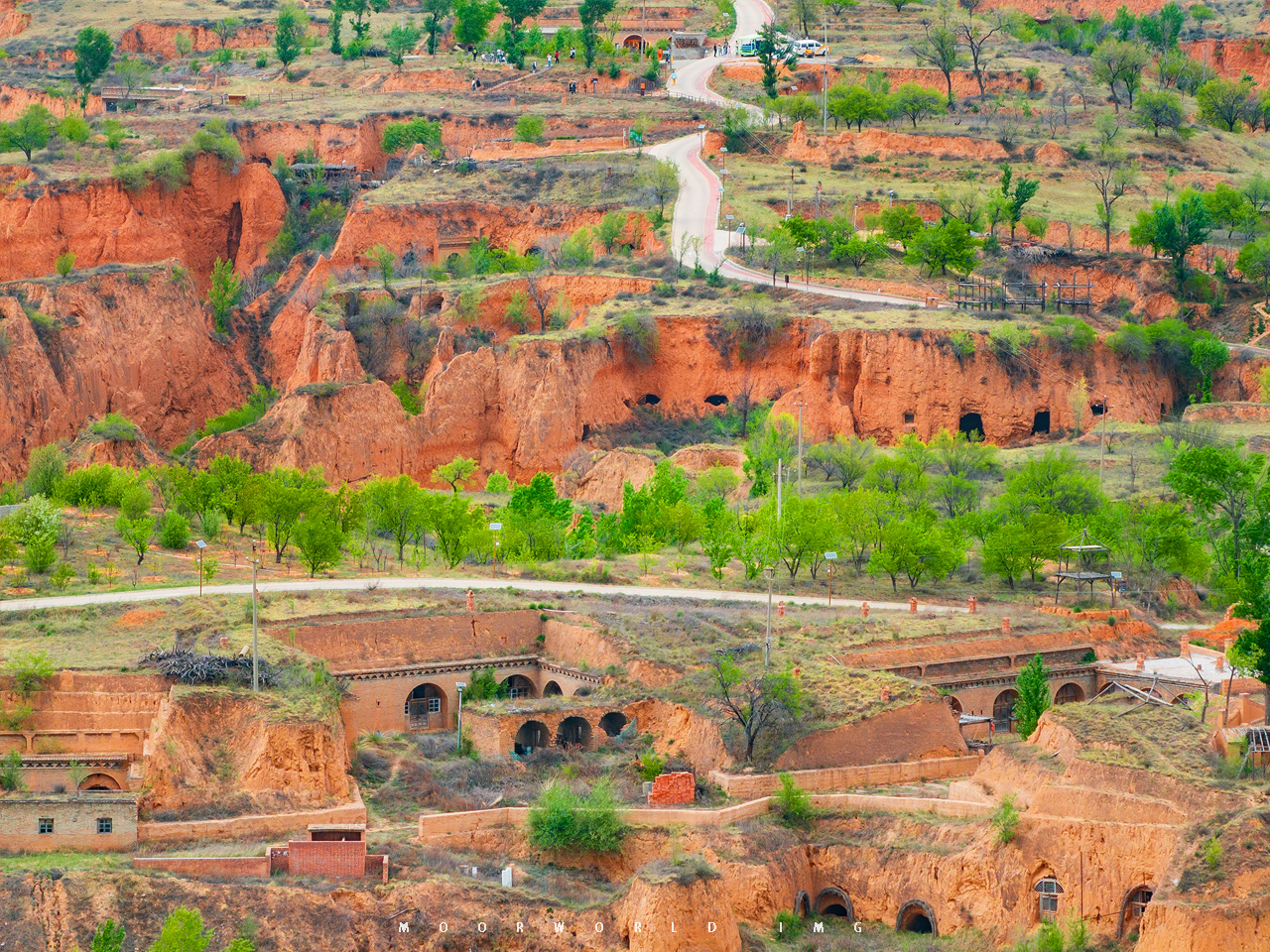当我走入这片红土地,我的脑海里哼起的是“我家住在黄土高坡”,黄土地的一些“丹霞”模样、层层叠叠的窑洞和弯弯曲曲的路,黄土高原的沟壑纵横、这些远方的大地色彩,都在这里汇聚了,于是我与无人机一起钻入这块大地的角角落落,流连了很久很久。