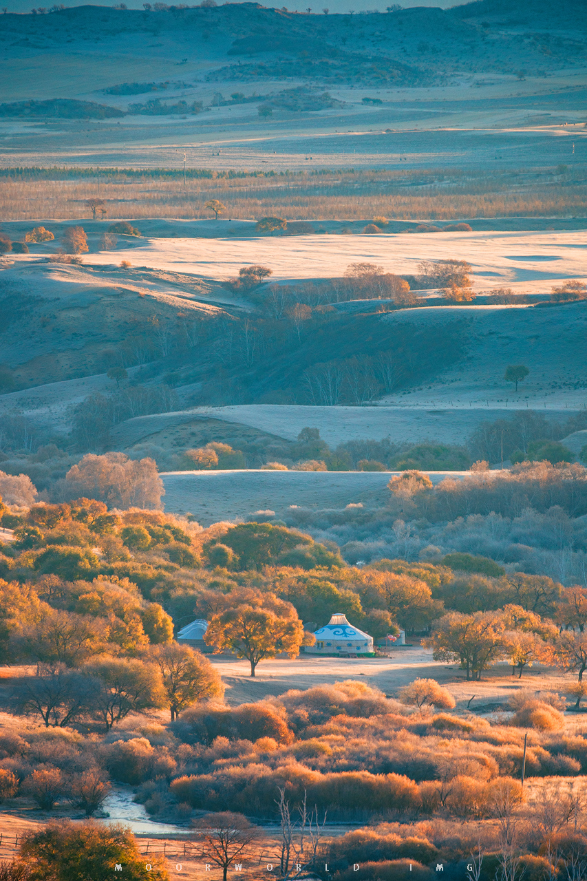 乌兰布通完成称得上坝上草原的精华地带,起伏的大地带来无尽的观赏视角,在每年的九月中旬至十月上旬的光阴里,无论天晴或落雪,都有取之不尽的美丽画面。