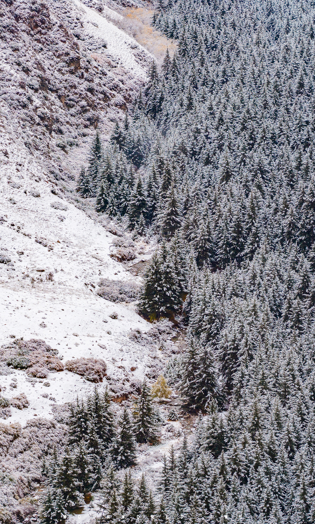 入秋,就会有冬雪不经意间飘落下来,就如同我的那么多的旅程里,蓝天白云是稀有的,雨雪是寻常的,只是偶尔落盖在大地与山林上的白雪,让天气偶尔透露出令人惊叹的模样。