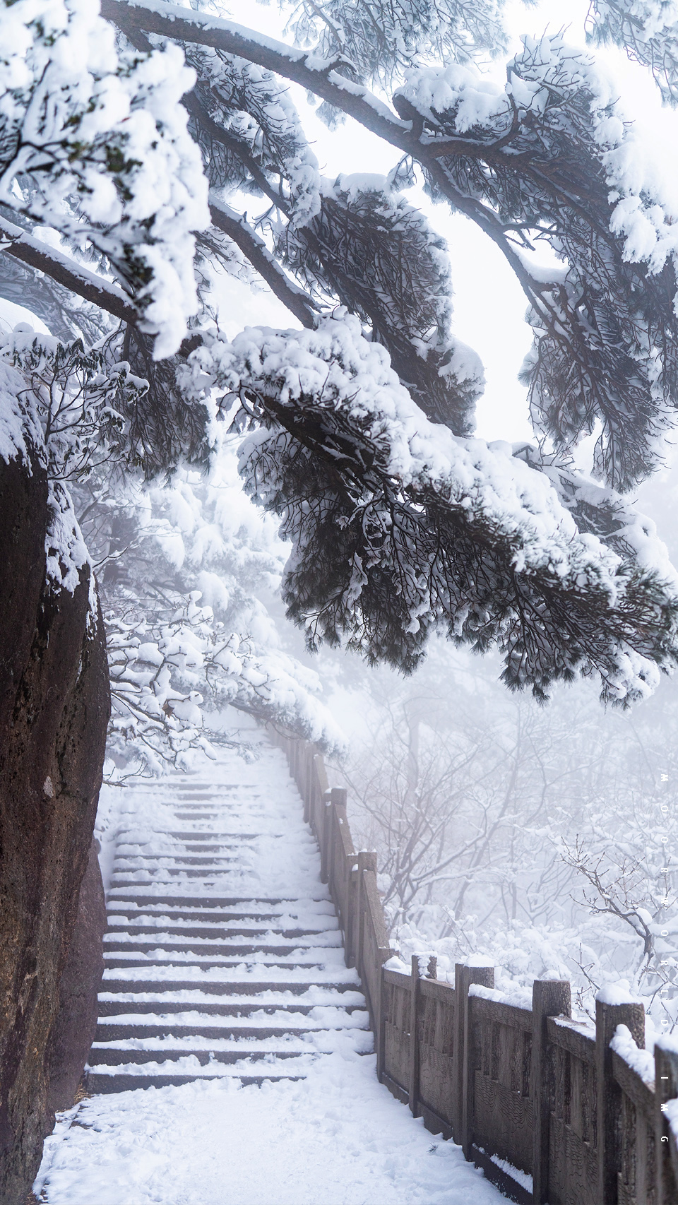 加上山林萦绕的湿漉雾气,犹如冬日里江南奇异冰雪山水画。