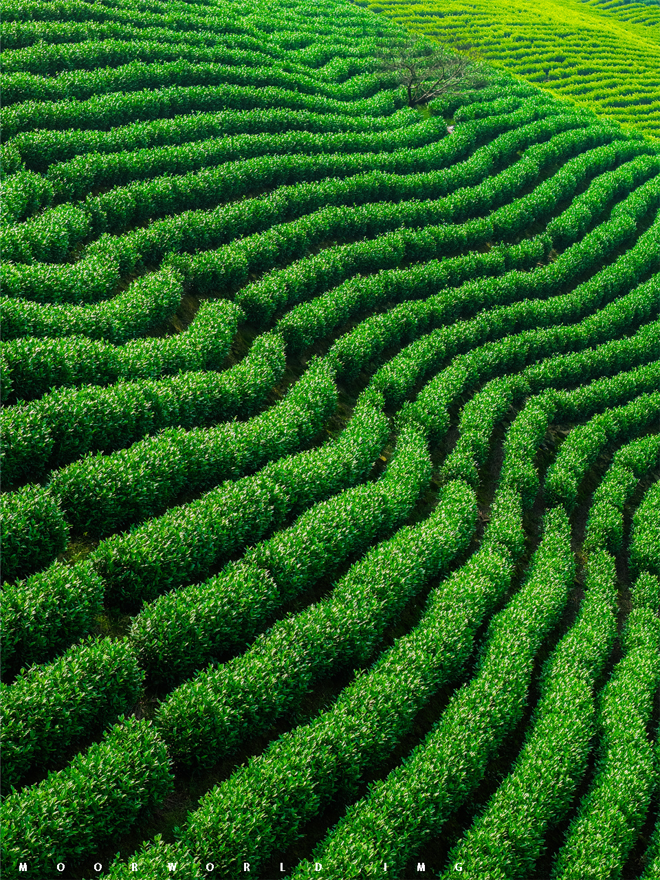 茶园也是寻景的镜头下有趣的地方,横看竖看都能获得眼前一亮的画面。