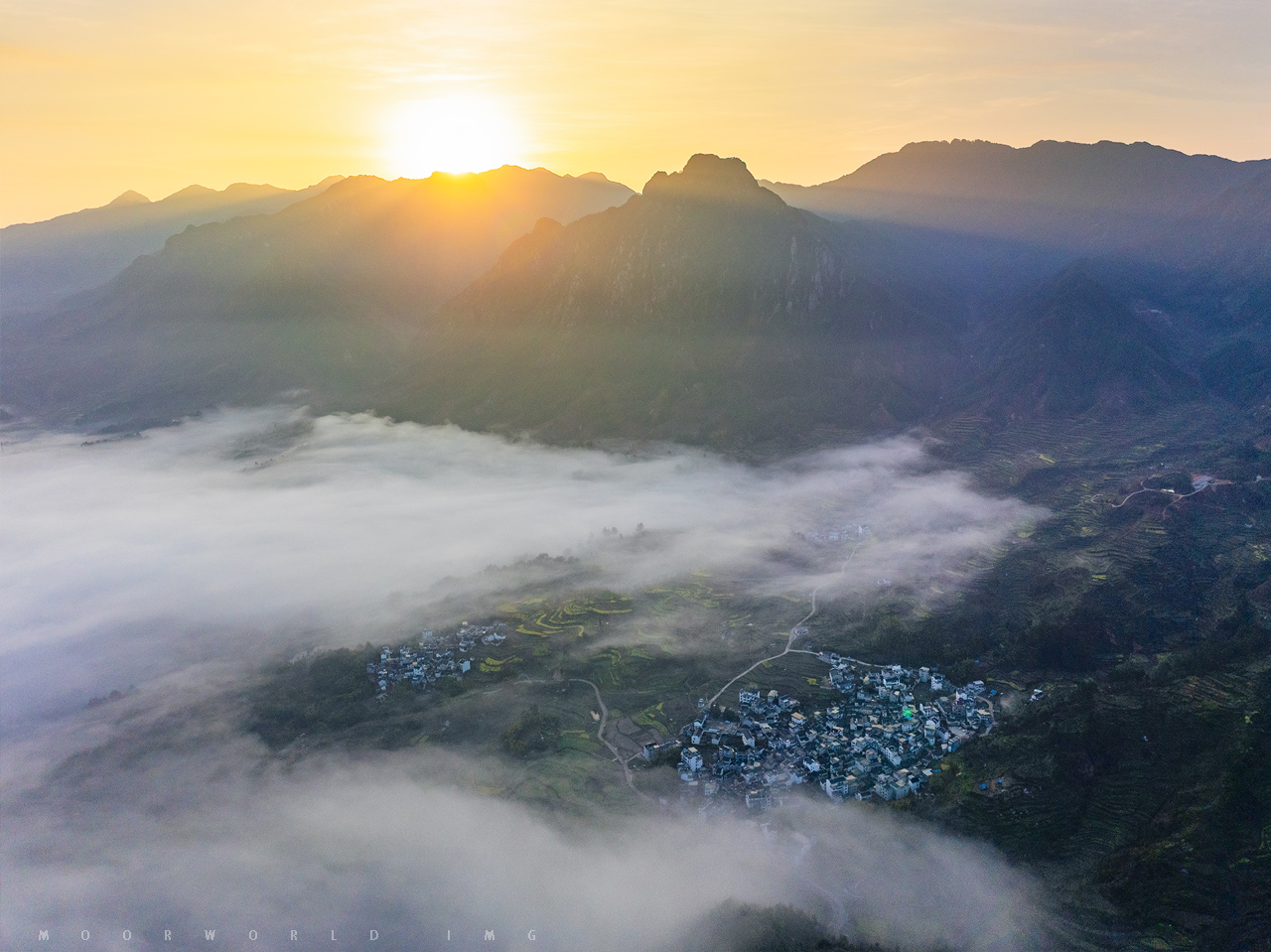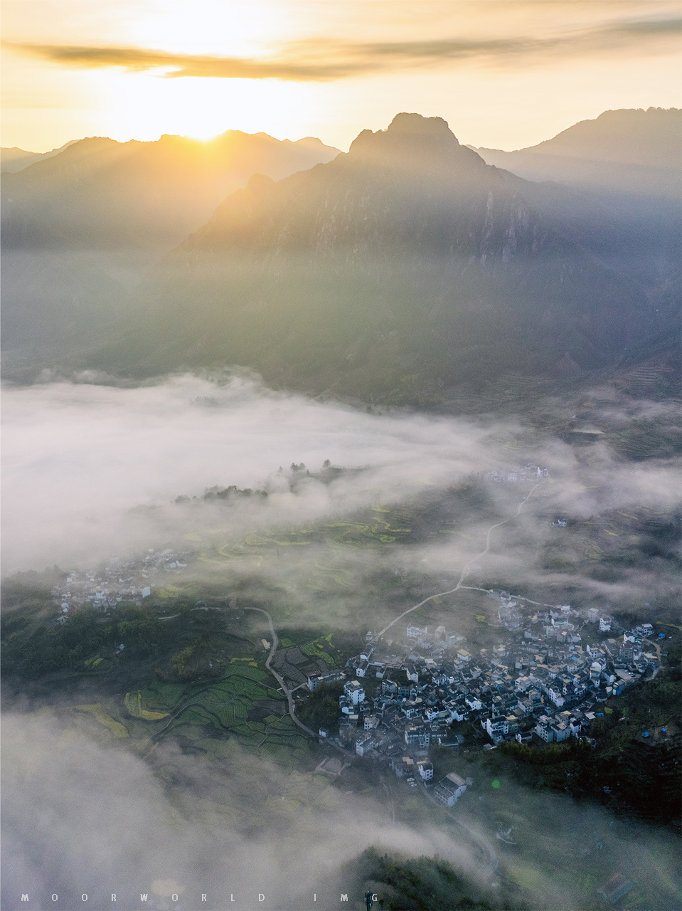 我在绩溪家朋乡的梅干岭,就收获了一场震撼无比的徽州典型春色日出景象,